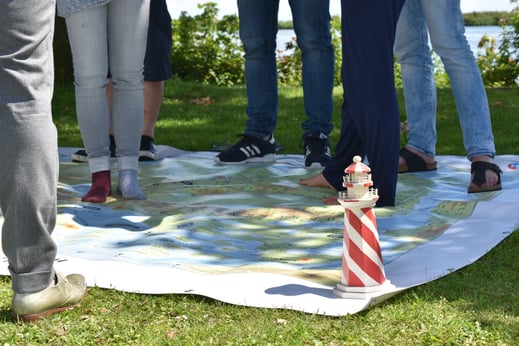 's Morgens op het strand onderzoeken we met elkaar welke talenten en kwaliteiten er allemaal in het team vertegenwoordigd zijn. Dit doen we aan de hand van een landkaart waarop 16 verschillende type mensen te zien zijn. Je plaatst jezelf letterlijk op de kaart. Door de kaart - en daarmee elkaar - te ontdekken kom je achter verschillende kwaliteiten van jezelf, maar ook van het team. Het werkt verbindend door dit met elkaar te delen en het team leert elkaar echt - of op een andere manier - kennen. Dit allemaal op een ongedwongen en toegankelijke manier.